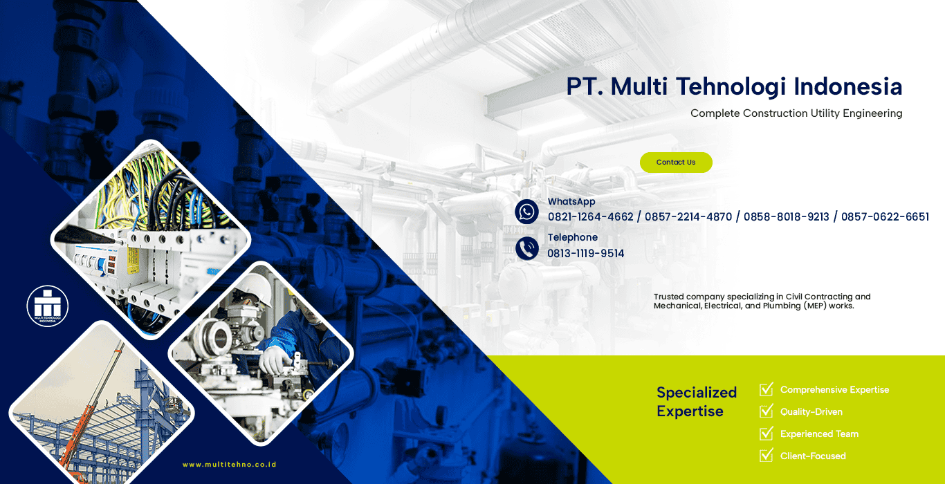 PT. Multi Tehnologi Indonesia (MTI) is a trusted name in water and wastewater treatment engineering in Indonesia. Our integrated capabilities cover Civil, Mechanical, Electrical, and Plumbing (MEP) works, allowing us to deliver turnkey solutions — from concept to commissioning.